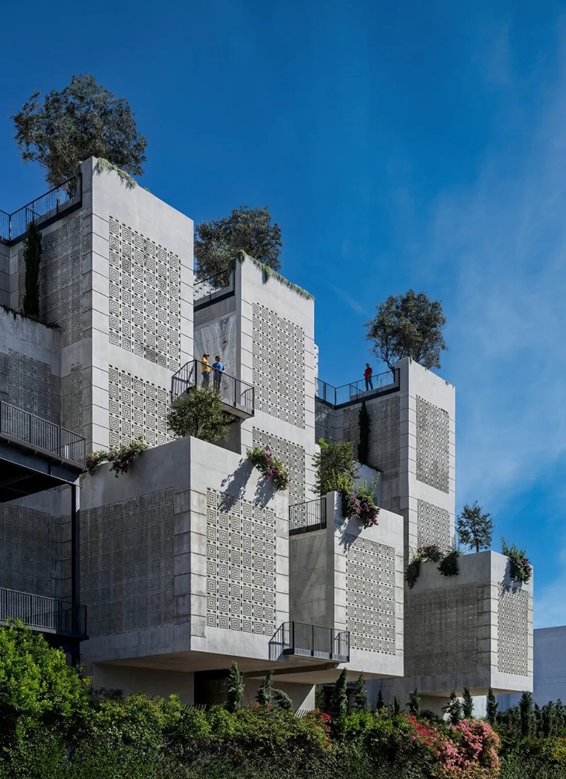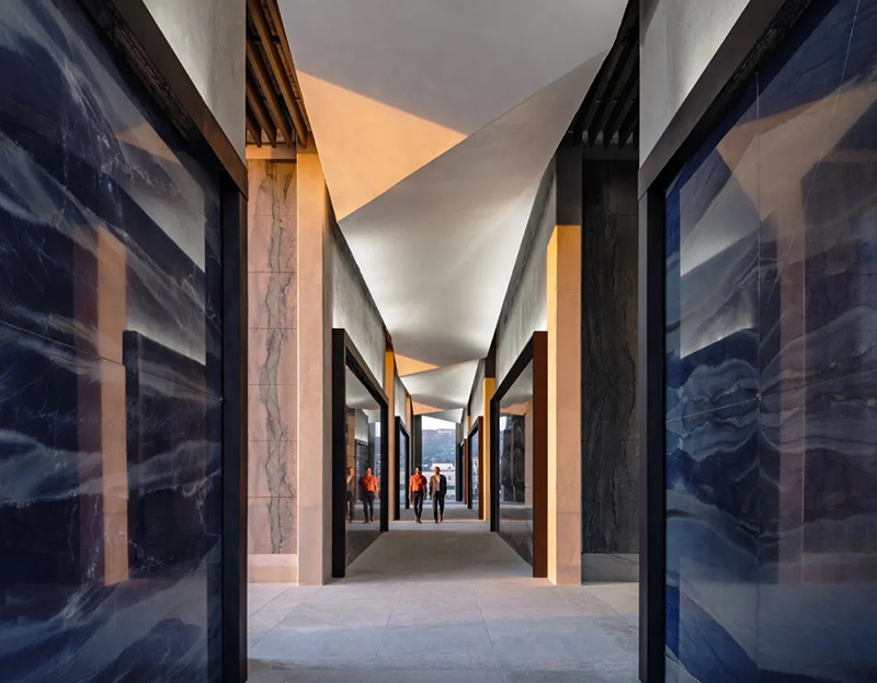 公墓分層設(shè)立的陽臺、庭院和梯田式花園從建筑向外延伸,提供眺望點(diǎn)、寬敞的座位以及一個適合沉思的空間。