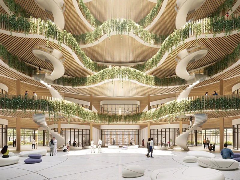 垂直森林體現了新龍坦醫院的特色,在一座中層建筑中設有 600 間客房,占地面積 66 500 平方米。其柔和的曲線營造出一種親生物的氛圍,促進健康和寧靜。環形基座圍繞大型天井、中庭和花園設置了技術平臺。