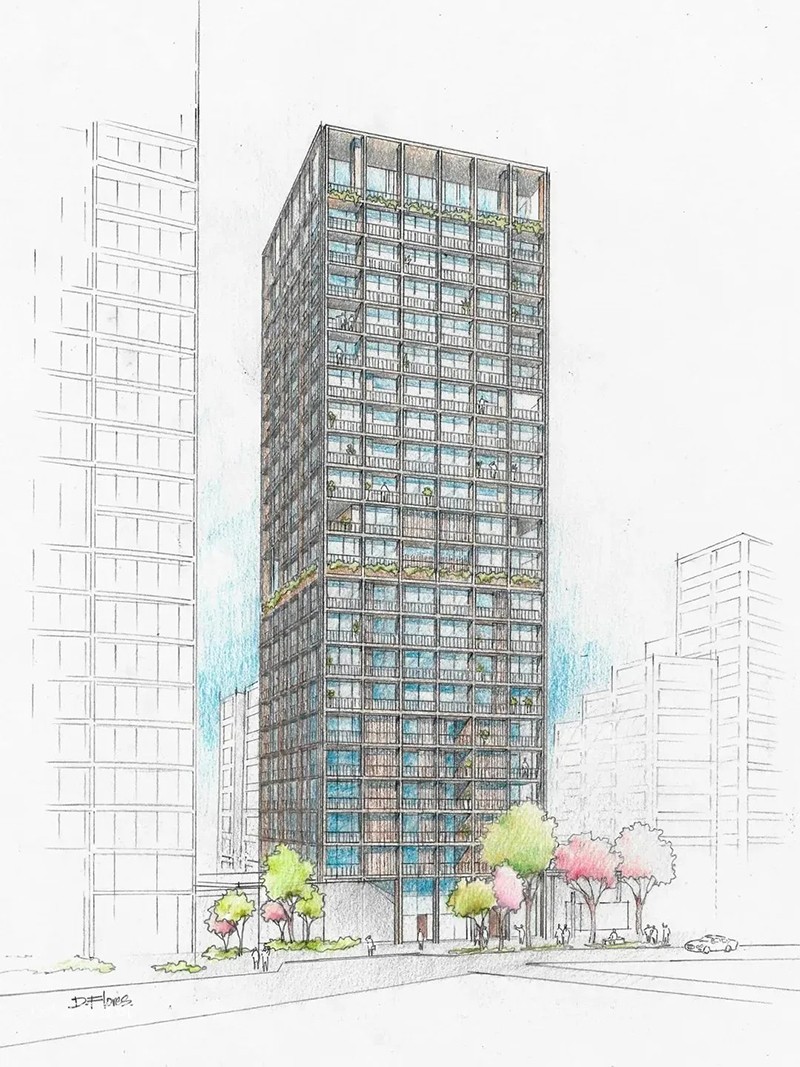 Bulnesia塔是一座90米高的住宅樓,以巴拉圭國樹Bulnesia sarmientoi(綠檀木)為靈感,建筑外立面通過豎向線條與鏤空結(jié)構(gòu)模擬樹木紋理,象征自然與城市的共生。