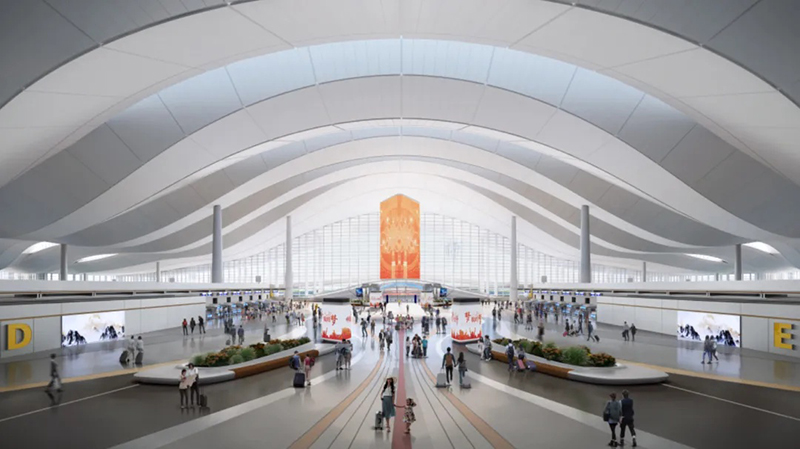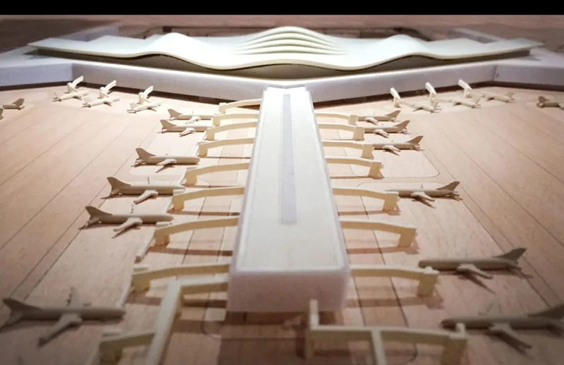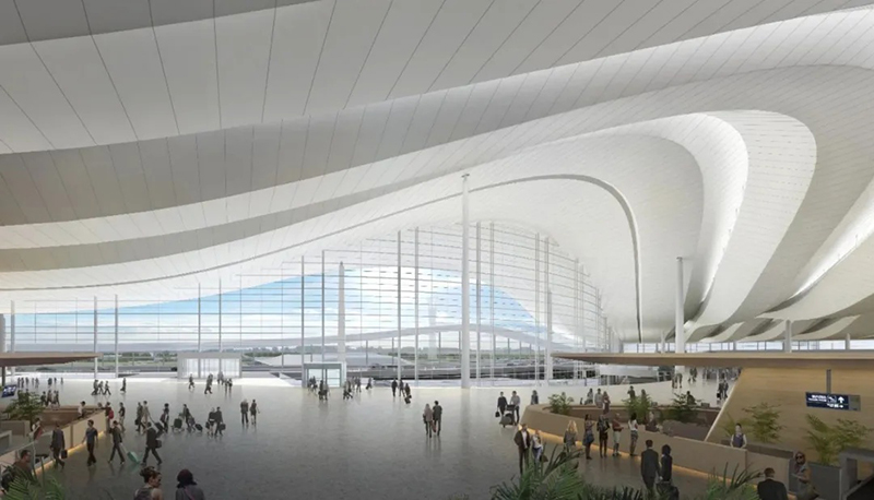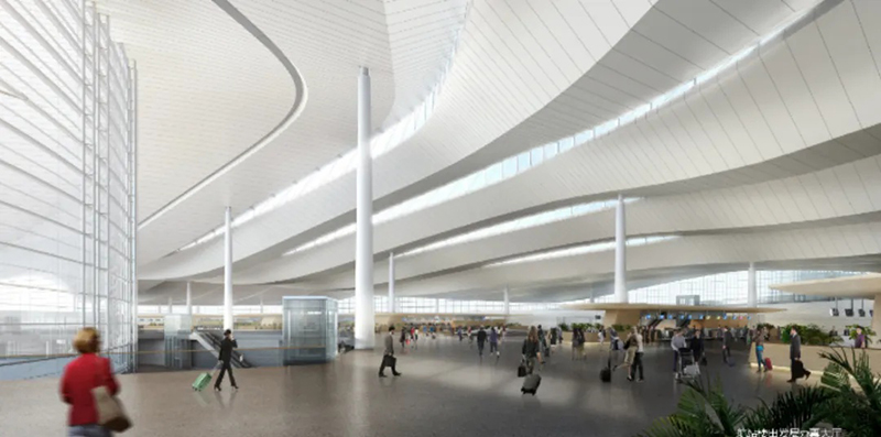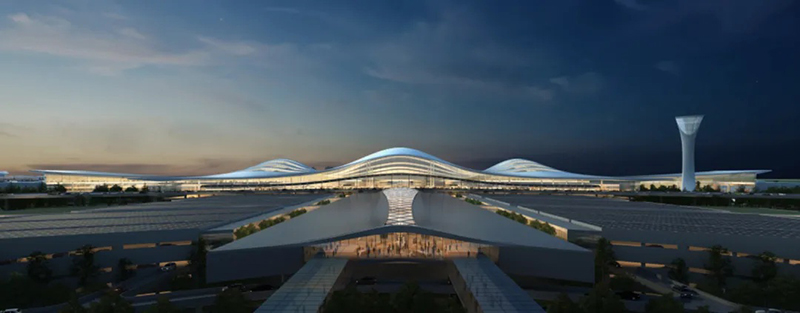 烏魯木齊天山國際機(jī)場(chǎng)的擴(kuò)建工程是國家“十三五”“十四五”重點(diǎn)建設(shè)項(xiàng)目,總投資約520億元,規(guī)劃建設(shè)兩條4F級(jí)跑道、50萬平方米的T4航站樓、177個(gè)停機(jī)位及綜合交通中心等設(shè)施;航站區(qū)采用“主樓+三指廊”構(gòu)型,地上四層、地下一層,可容納年旅客吞吐量3500萬人次,貨郵吞吐量55萬噸