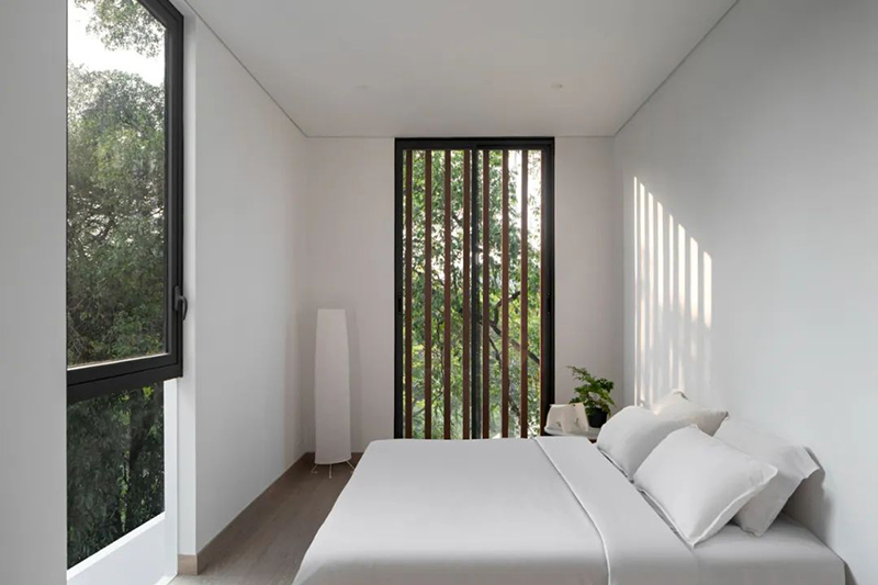 設(shè)計(jì)中整合了多個(gè)露臺(tái),為住戶提供了與自然互動(dòng)的立體空間。寬敞的屋頂不僅讓人們?cè)谛蕾p周邊景致的同時(shí)享受戶外活動(dòng),還通過(guò)遮蔭結(jié)構(gòu)降低了室內(nèi)熱量的輸入,減少了對(duì)空調(diào)與人造照明的依賴,從而構(gòu)建出更節(jié)能、可持續(xù)的生活模式。