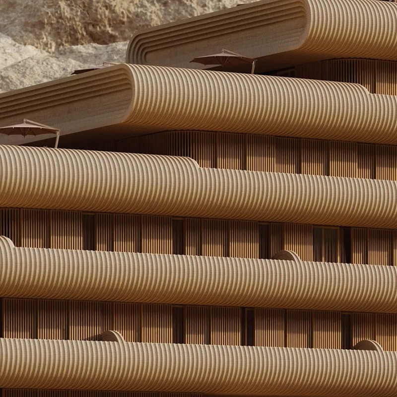 一座向上攀升的建筑。彎曲的樓板與山勢相呼應。并非為了引人注目,而是為了靜靜地融入其中。